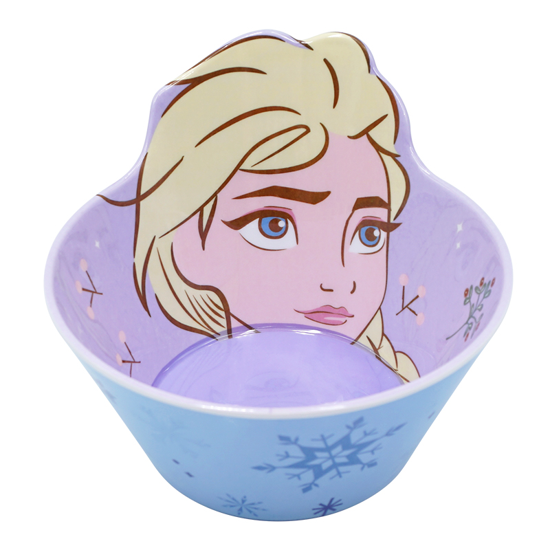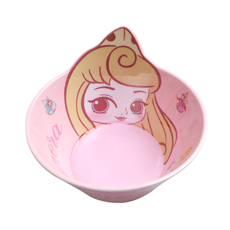 Disney melamine bowl with 3D shape, genuine authorization, melamine imitation porcelain tableware, using A5 grade raw materials, in line with food hygiene standards, after three times of high temperature and high pressure molding, beautiful and colorfast, finely polished by hand; Cute food device, Q cute heart, deepen the bowl body by 360ML, and satisfy the baby's taste of different complementary foods.