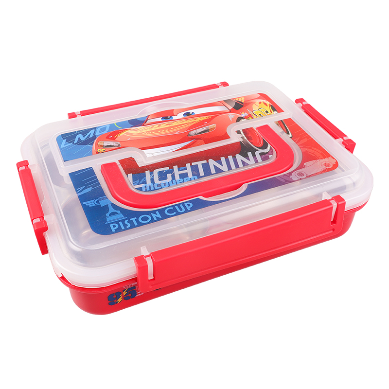 Disney lunch box with four compartments, genuine authorization, full of fun, 304 stainless steel liner, heat insulation and heat resistance, seamless connection; Silicone sealing ring+four-side buckle design, double-layer insurance, take it out with confidence; Sub-design, nutrition with heart, own delicious, healthy, large-capacity, satisfy the taste of the mouth.